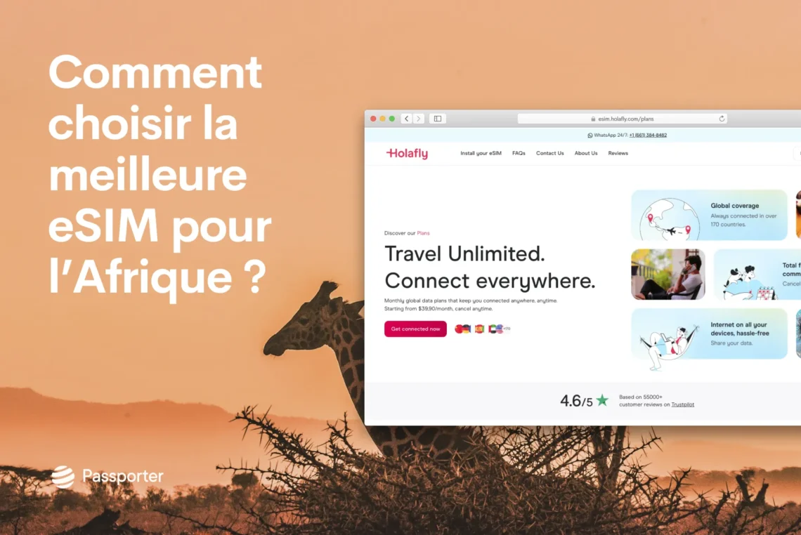 Holafly Plans, avec son eSIM pour l’Afrique et ses plans mondiaux, convient parfaitement si vous voulez rester connecté sans y penser : données illimitées, support en français et une seule eSIM pour tout le trajet. Si vous préférez une approche plus ciblée ou un prix ajusté pour un seul pays, une SIM peut aussi convenir, mais il faudra gérer les boutiques, inscriptions et changements à chaque frontière. Avec Holafly Plans, tout se simplifie : une seule eSIM pour plus de 160 pays, données illimitées, hotspot illimité et connexion automatique au meilleur réseau disponible, le tout avec un support 24/7 en français. Pour le télétravail, les cours en ligne ou le transfert de fichiers volumineux, cette continuité fait toute la différence.